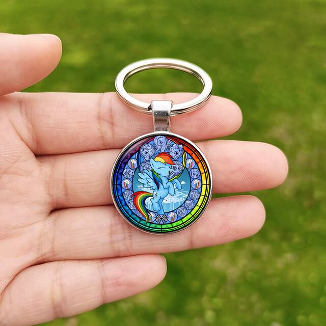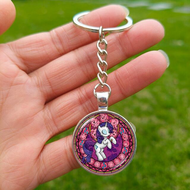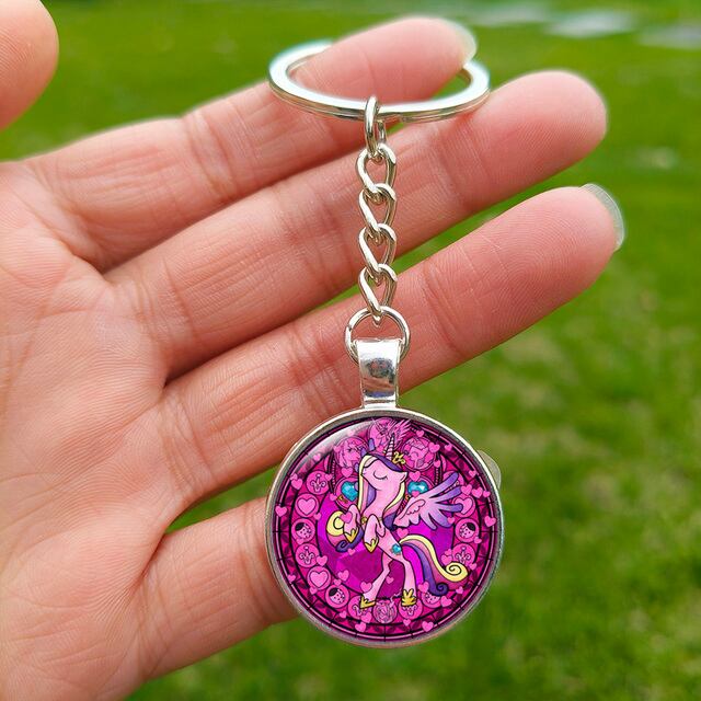 私の小さなユニコーンキーホルダー、ガラスの写真、馬のキーホルダー、プリンセスキーリング、女の子のための手作りのパーティーギフト、ファッション