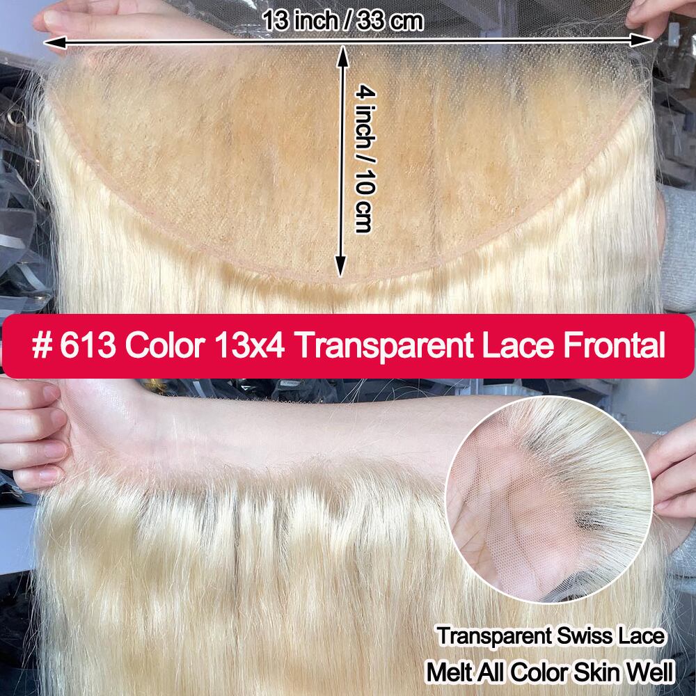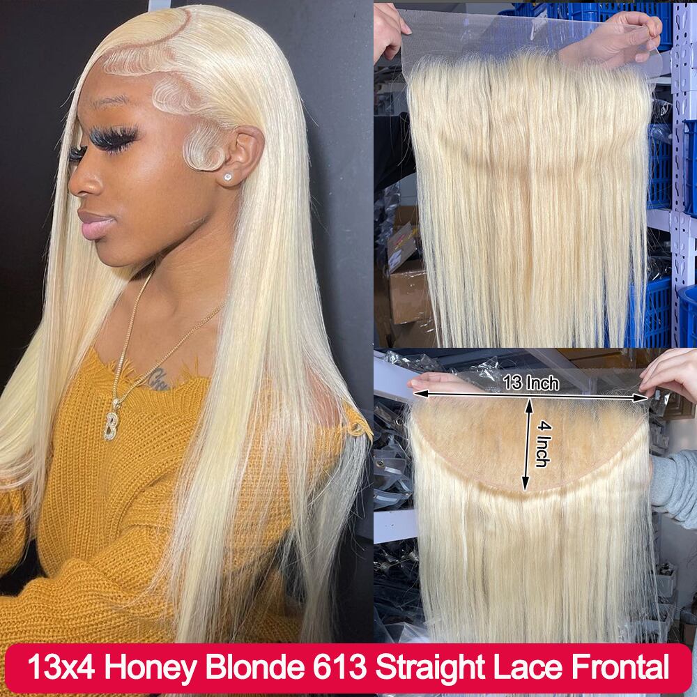 ブラジリアンレミーナチュラルヘア、ハニーブロンド613、透明レースフロントのみ、ストレート、ベビーヘアで事前に抜いた、13x4