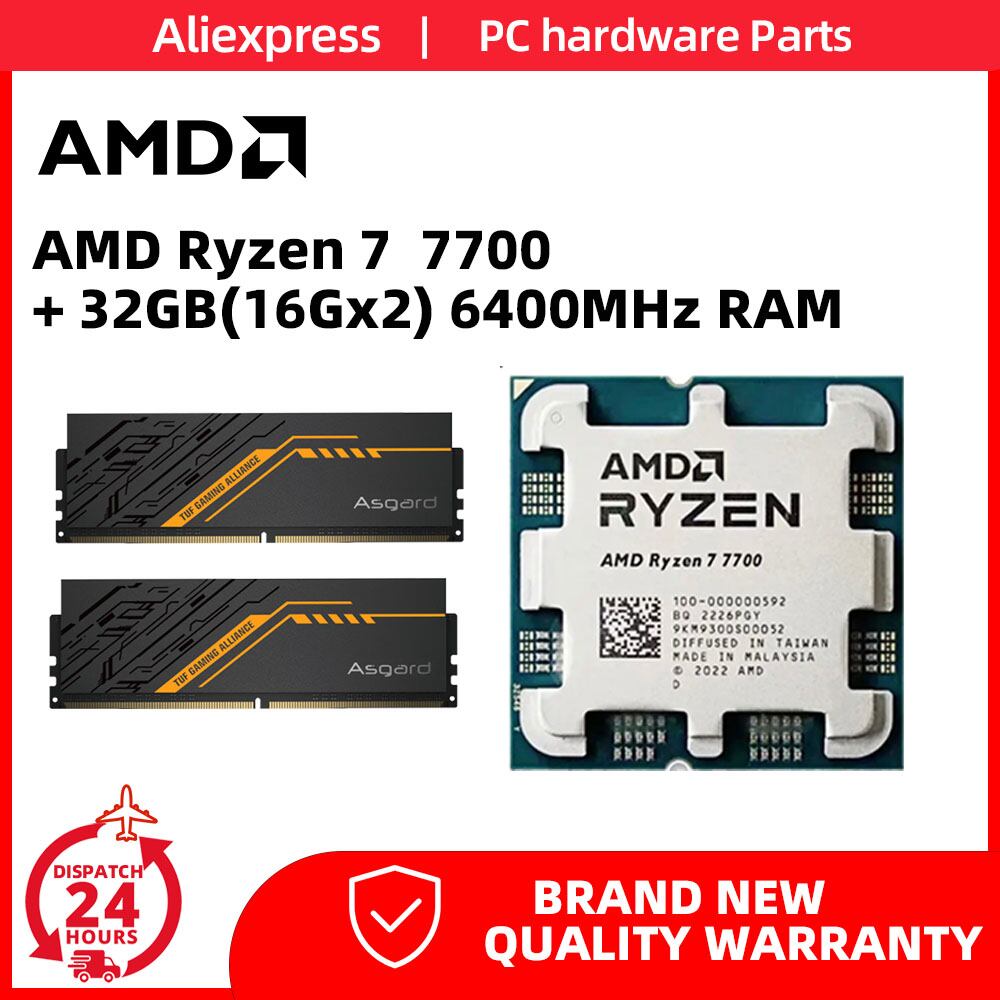 Amd ryzen 7-ゲーミングcpuプロセッサ,r7 7700, 8コア,16スレッド,32GB, 16 GB x 2, 6400mhz RAMキ