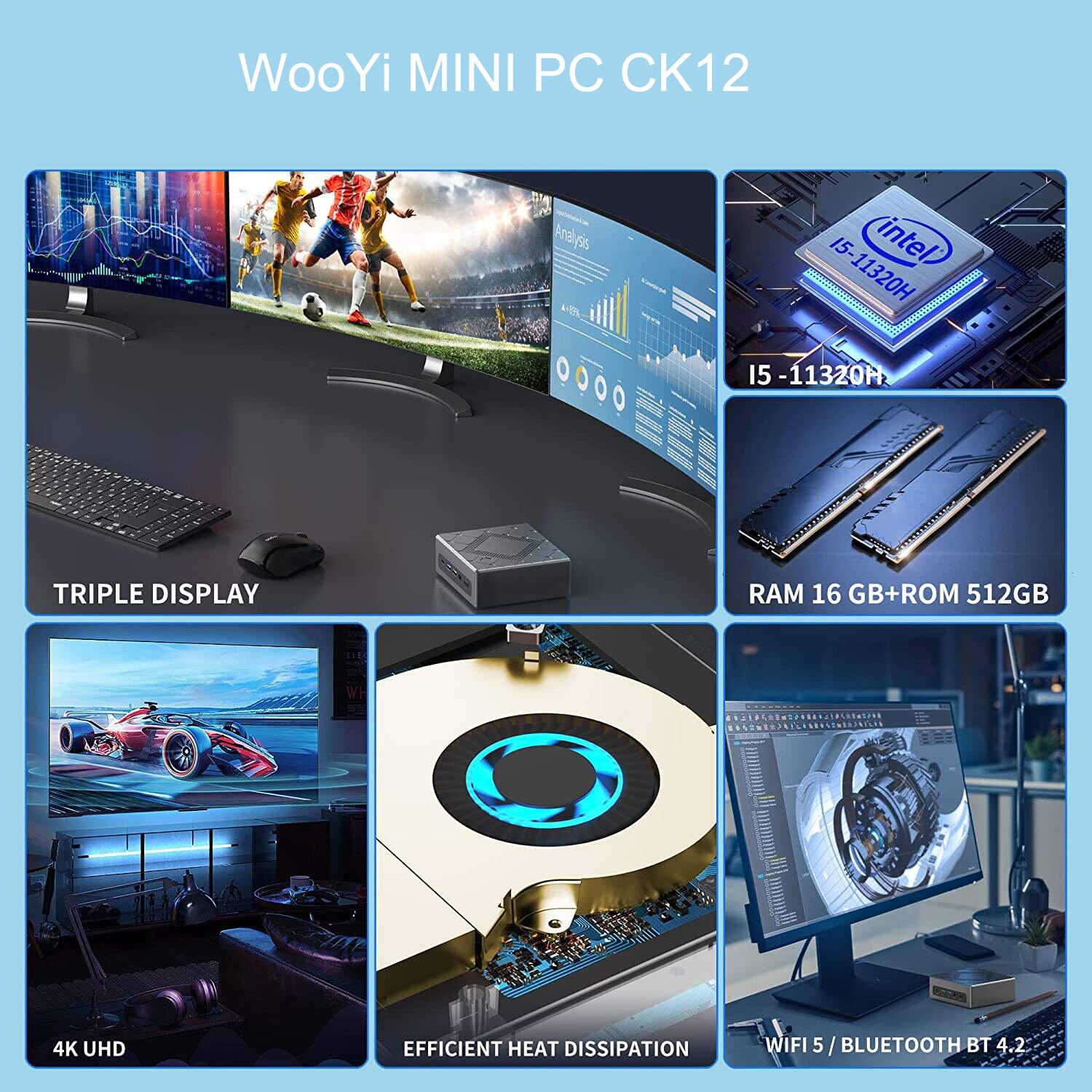 WooYi-CK12ミニPCデスクトップコンピューター,Intel Core i5-12450H, 16GB, 32GB,ddr4,512GB, 1テ