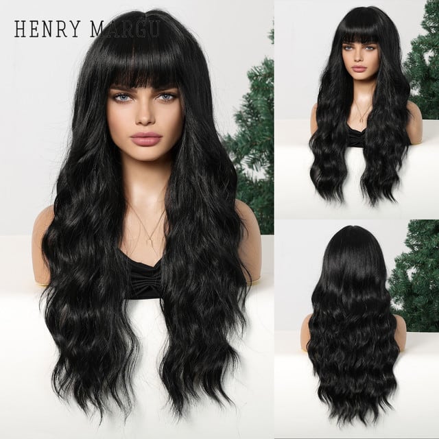 【魅力的なナチュラルウィッグ】毎日の装いや特別なパーティーで輝きたい女性にぴったり。厚みと重みが自然な仕上がりを叶え、絡まずにしっとりとした触り心地が魅力のHENRYMARGUの女性用長波かつら。健康ファイバーを使用し、天然のリアルさを実現。通気性にもこだわったCapwig技術で着心地も抜群。ファクトリーアウトレットなので品質に自信あり。もし何か問題があればすぐに対応。自信を持って魅力的な外見を手に入れませんか?HENRYMARGU-女性用の長い波状の合成かつら,フリンジ付きの黒い巻き毛,耐熱繊維,日常使用,パーティー用【ナチュラルウィッグ】-このチャーミングなウィッグは、特別な技術を使用してウィッグをナチュラルできれいにします。