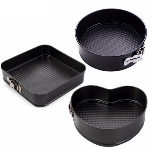 3ピース/セットノンスティックspringformケーキパン金属ベーキングケーキ型と底ラウンドハート正方形耐熱皿パン