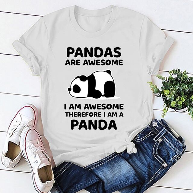 女性用半袖Tシャツ,パンダ,素晴らしい,夏,原宿
