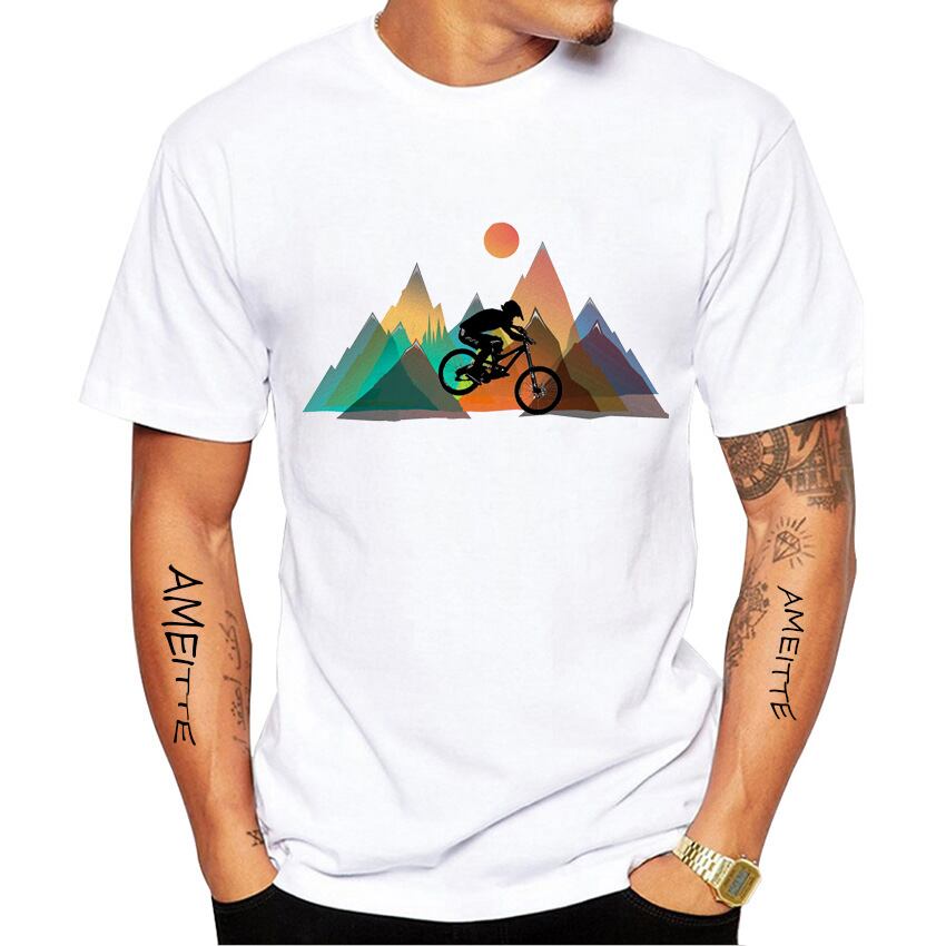 面白い自転車私は乗車したがって私はtシャツ夏のメンズ半袖バイクプリント白カジュアルなトップスヒップホップboy tシャツ