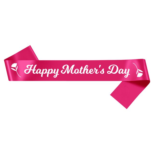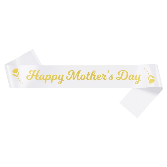 サテン素材の華やかサッシは、ママの誕生日や母の日にぴったり。色はバラ、白、バラゴールドから選べます。