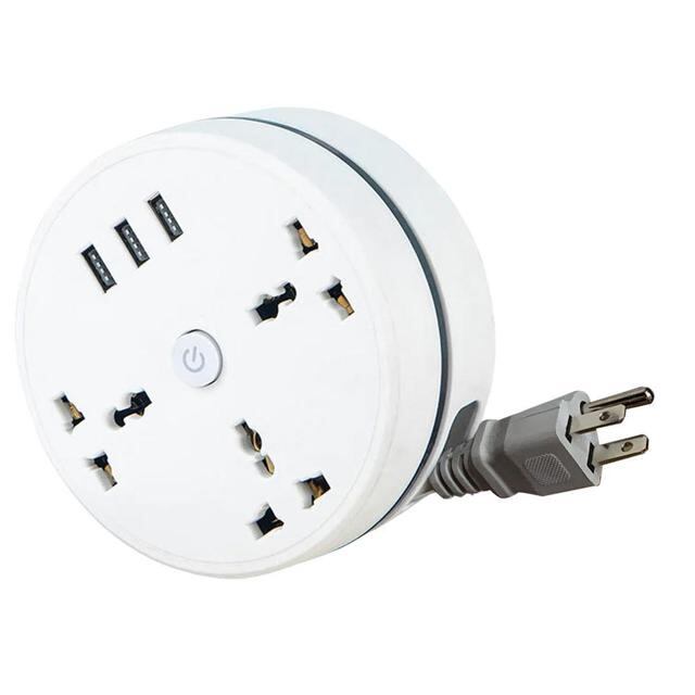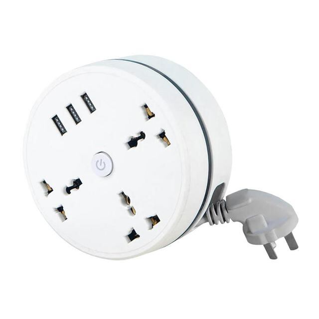 ユニバーサル丸型電源タップ,3つのUSBケーブルを備えた充電器,EUおよびUKソケットに接続された家庭用の便利なプラグ