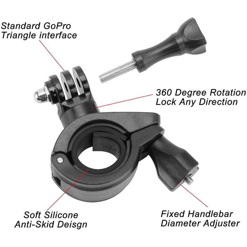 新しいバイクライフを360度全方位で楽しむための必需アイテム!安定感抜群のラバーグリップ付きハンドルバーマウントは、あらゆるアクションカメラに対応可能。自転車やバイクでのアドベンチャーをよりスリリングに、より鮮明に捉えられること間違いなし!機能:ハンドルバーマウントのクランプ内には、頑丈で滑りにくいラバーグリップがあります。