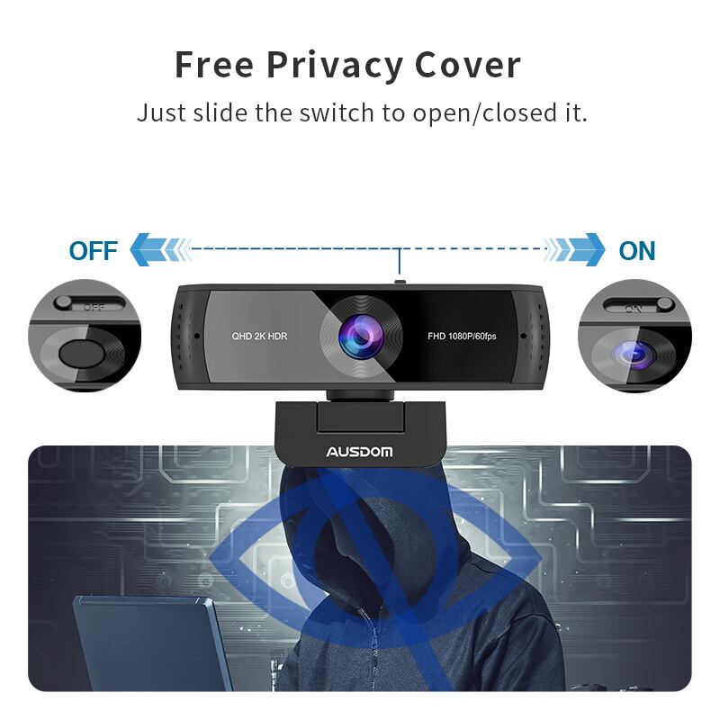 Ausdom-プライバシーカバー付きWebカメラ,モデルaw651,qhd 2k,hdr,30fps,Webcam,オートフォーカス,1080p,60