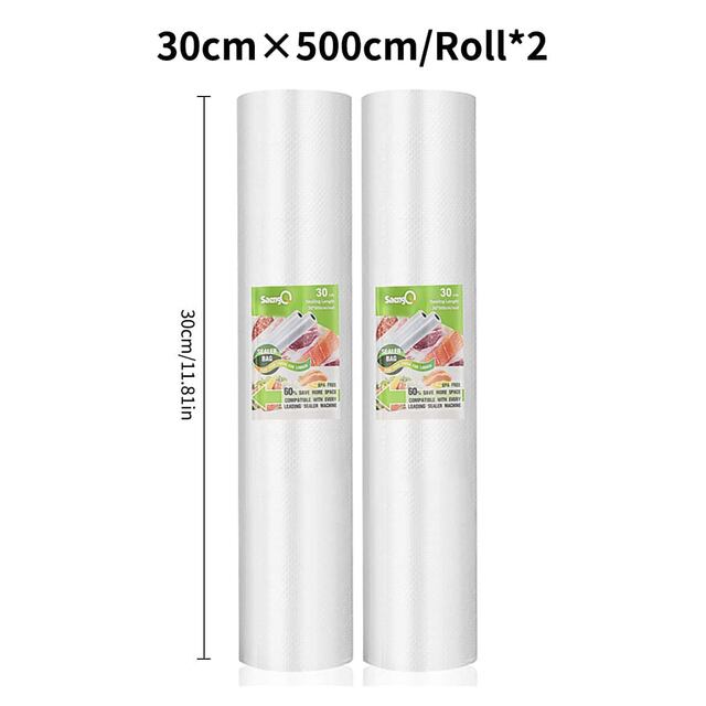 食品真空包装ロール、長い質感のロール、圧縮バッグ、片面メッシュ、500cmの2パック
