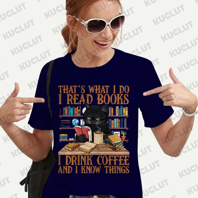 女性のためのかわいい猫の絵が描かれたTシャツ,シンプルなオブジェクトを読むためのブラウス,外出のために