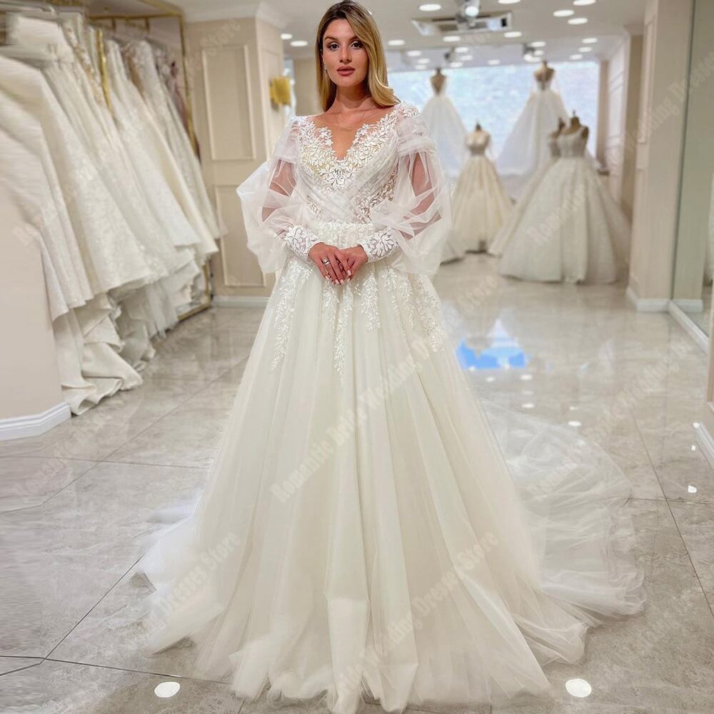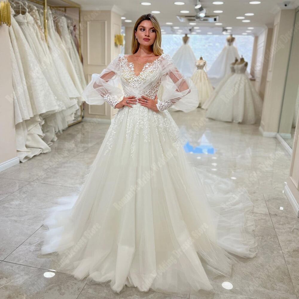女性のための光沢のあるチュールを備えたエレガントなブライダルガウン,ラインフラワー,ショルダーストラップ,プリンセスドレス,2022