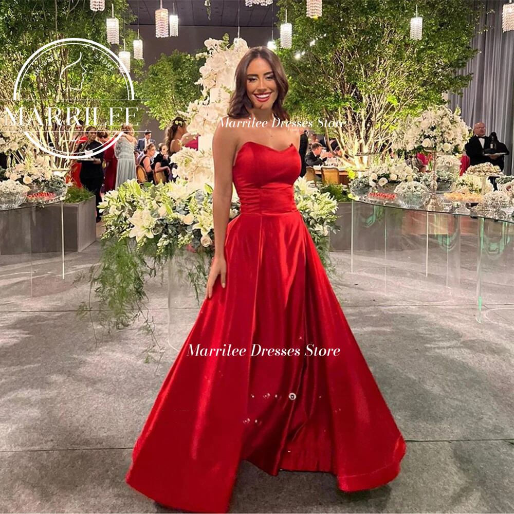 マリリー-ストラップレスのAラインイブニングドレス,エレガントなノースリーブのドレス,床の長さ,カクテルのためのオープンバック,セクシーな赤,ピンセッ