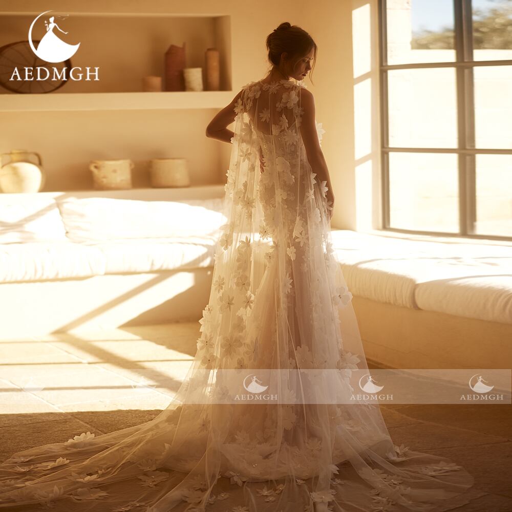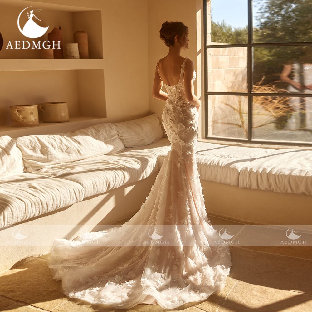 Aedmgh-マーメイドのウェディングドレス,ノースリーブ,レースの刺embroidery,3D花,2020