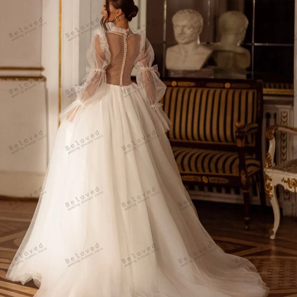 Graceful-女性のためのレースのアップリケ,長いパフスリーブ,地面の長さ,ウェディングドレス,2024
