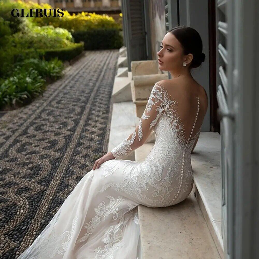 レースのウェディングドレス,Vネック,長袖,トランペットのブライダルガウン,アイボリーシャンパン,ラージサイズ,新しいコレクション2022