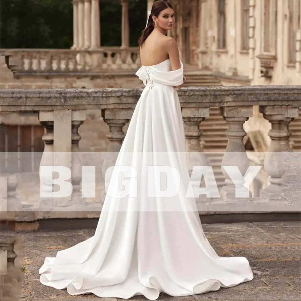 女性のためのエレガントな空中ブランコのウェディングドレス,裸の肩のフェミニンなドレス,オープンバック,プリーツ,分割,サテンのブライダルガウン,202