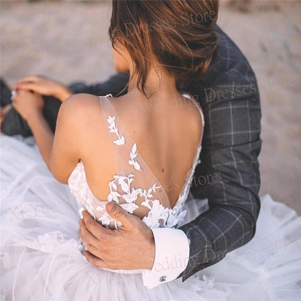 女性のウェディングドレス,Vネック,クラシック,ノースリーブ,レースアップリケ,ホルタートップ,ビーチドレス,魅力的,2024