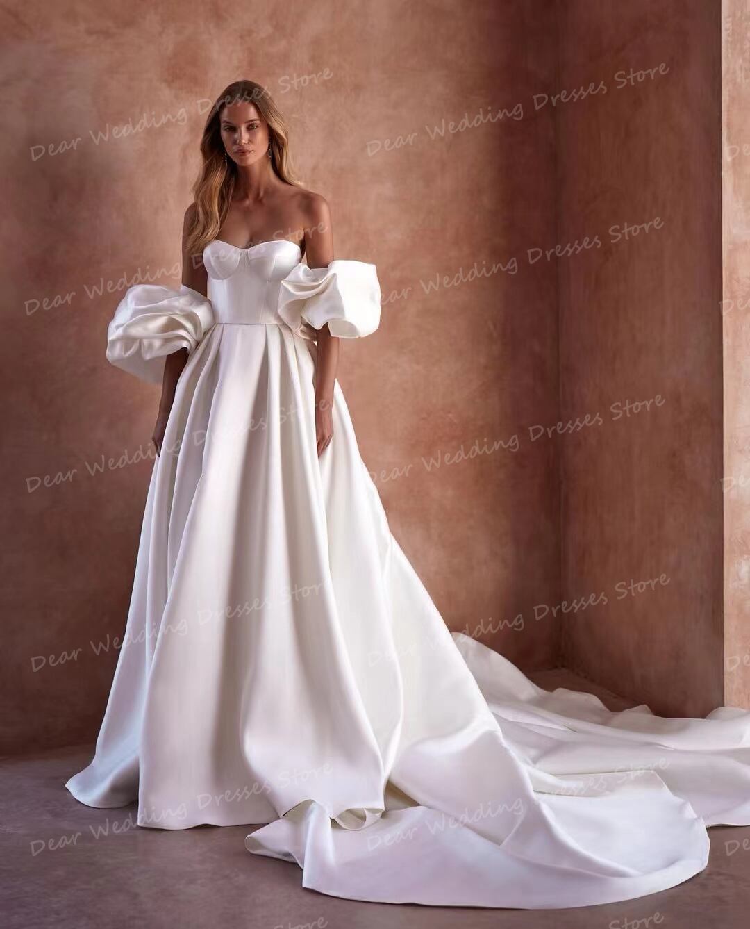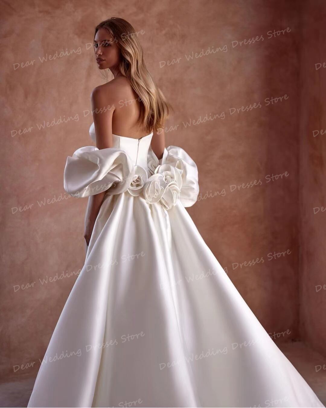 華やかでエレガントなサテンのウェディングドレスが、あなたを魅了すること間違いなし!背中の開いたデザインがセクシーさを際立たせ、シルエットを美しく演出します。モダンでスイープトレーンのデザインは、まるで赤いカーペットを歩くセレブのような気分を味わえることでしょう。あなたの特別な日にふさわしい、最高品質のウェディングドレスをぜひお楽しみください!製品の説明私たちの店へようこそ、あなたのためにあなたのウェディングドレスを作るために私たちのチームを選んでくれてありがとう。