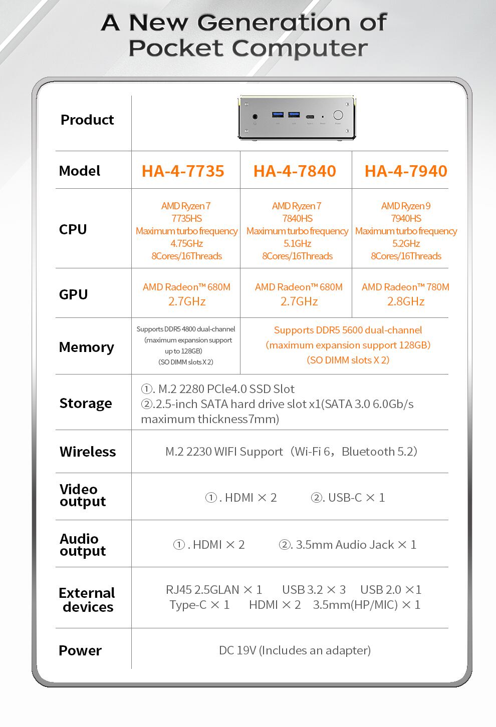 Peladn-ポータブルミニPCゲーマー、ha-4、amd ryzen 7、7840hs、7735hs、ddr5、16gb、512gb、nvme、ss