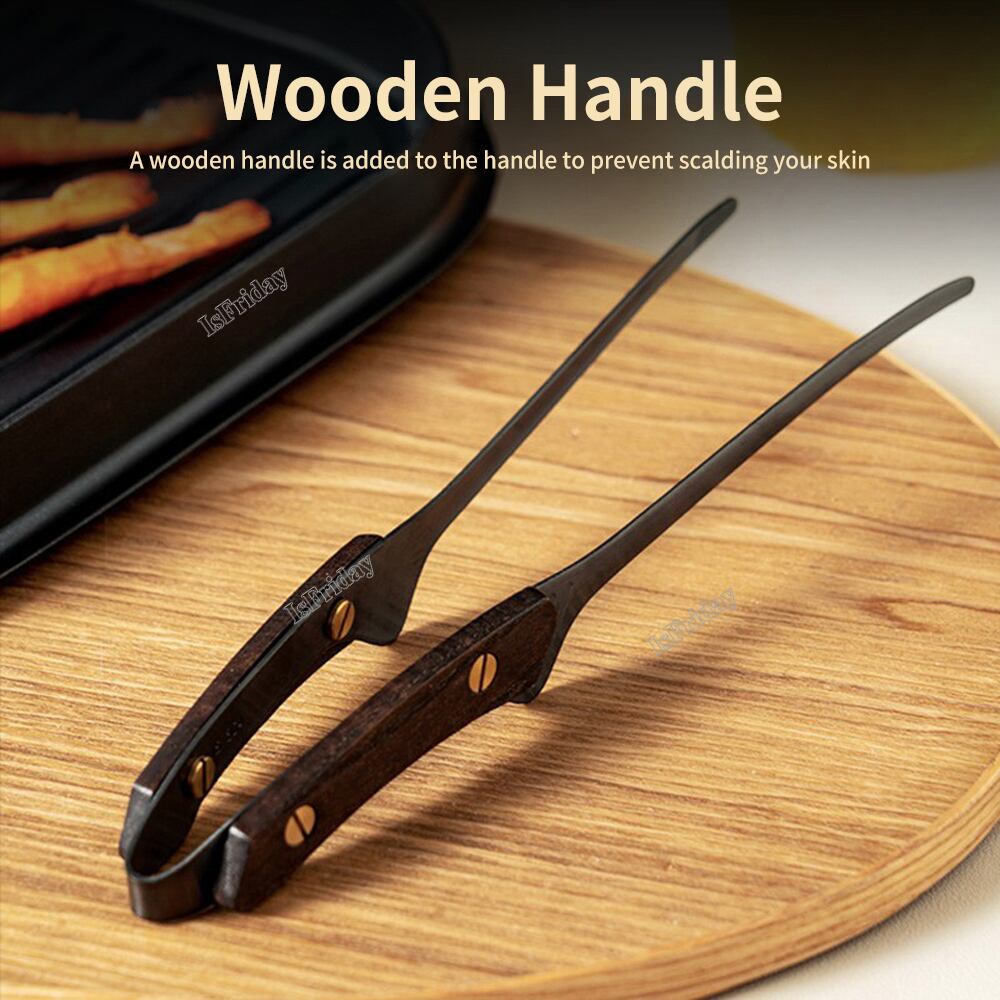 2.無垢材のグリップが付いた長くて厚いハンドル:キャンプ用トングは、無垢材のグリップが付いた長くて厚いハンドルを備えており、快適さを高め、温かい食品の取り扱い中に滑りや火傷を防ぎます。