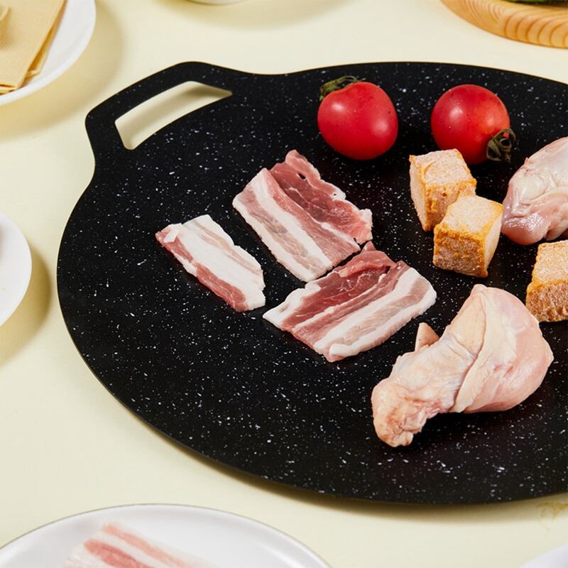 無煙バーベキューグリルパン、丸いグリドル、バーベキュープレート、屋内、屋外、グリル、揚げ物、耐熱ホルダー、韓国