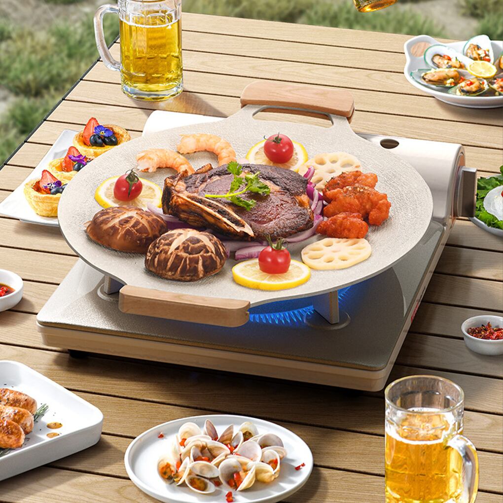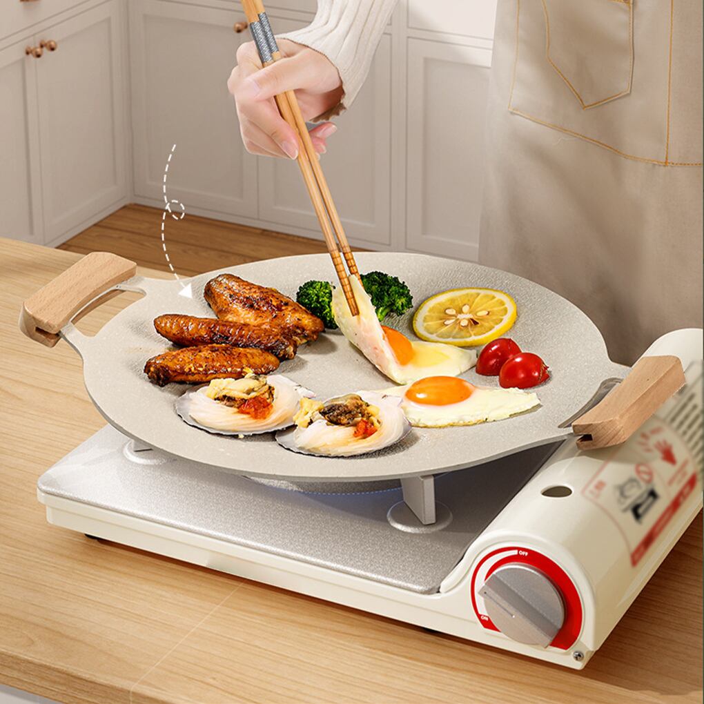 バーベキューパン:耐久性のある鉄素材で作られたこのグリルパンは、長持ちし、高温に耐えるように作られています。