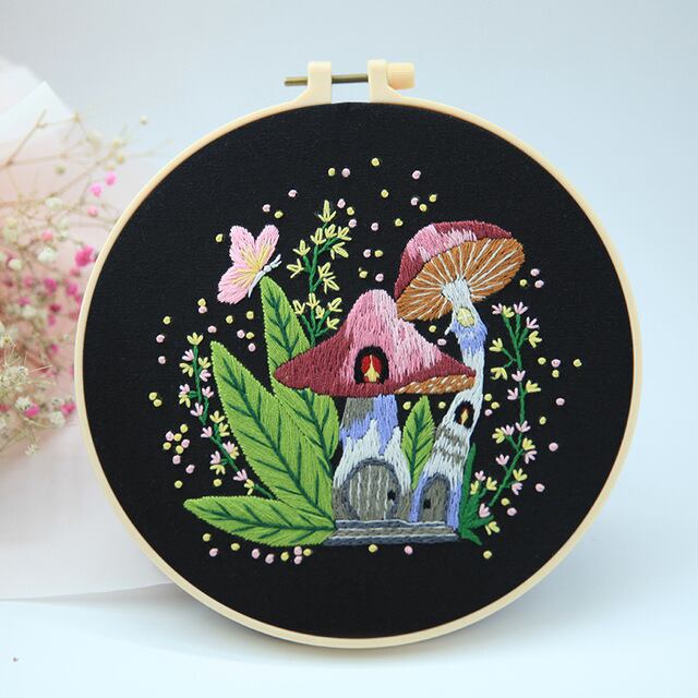キノコ-初心者のための刺embroideryキット,花柄,クロスステッチ,手作りの縫製アート