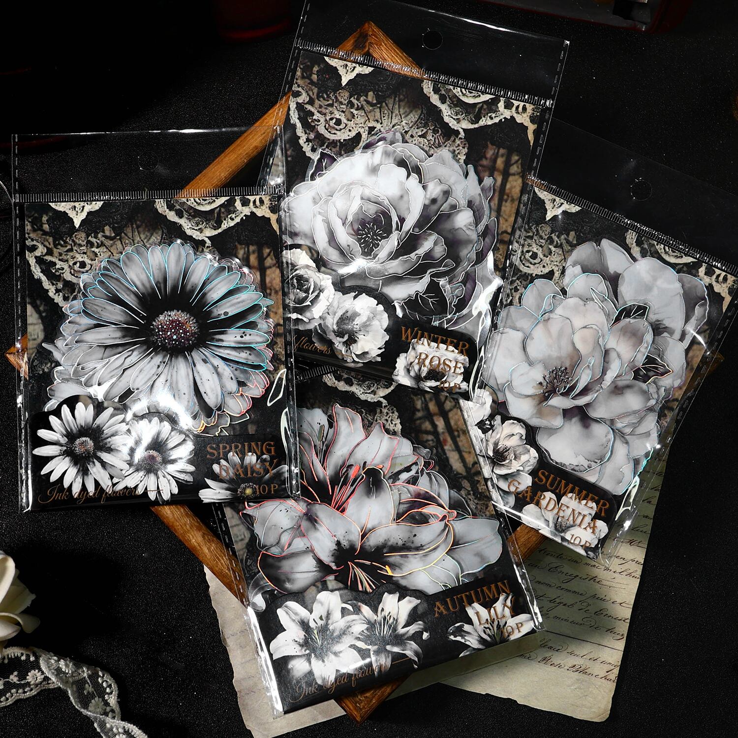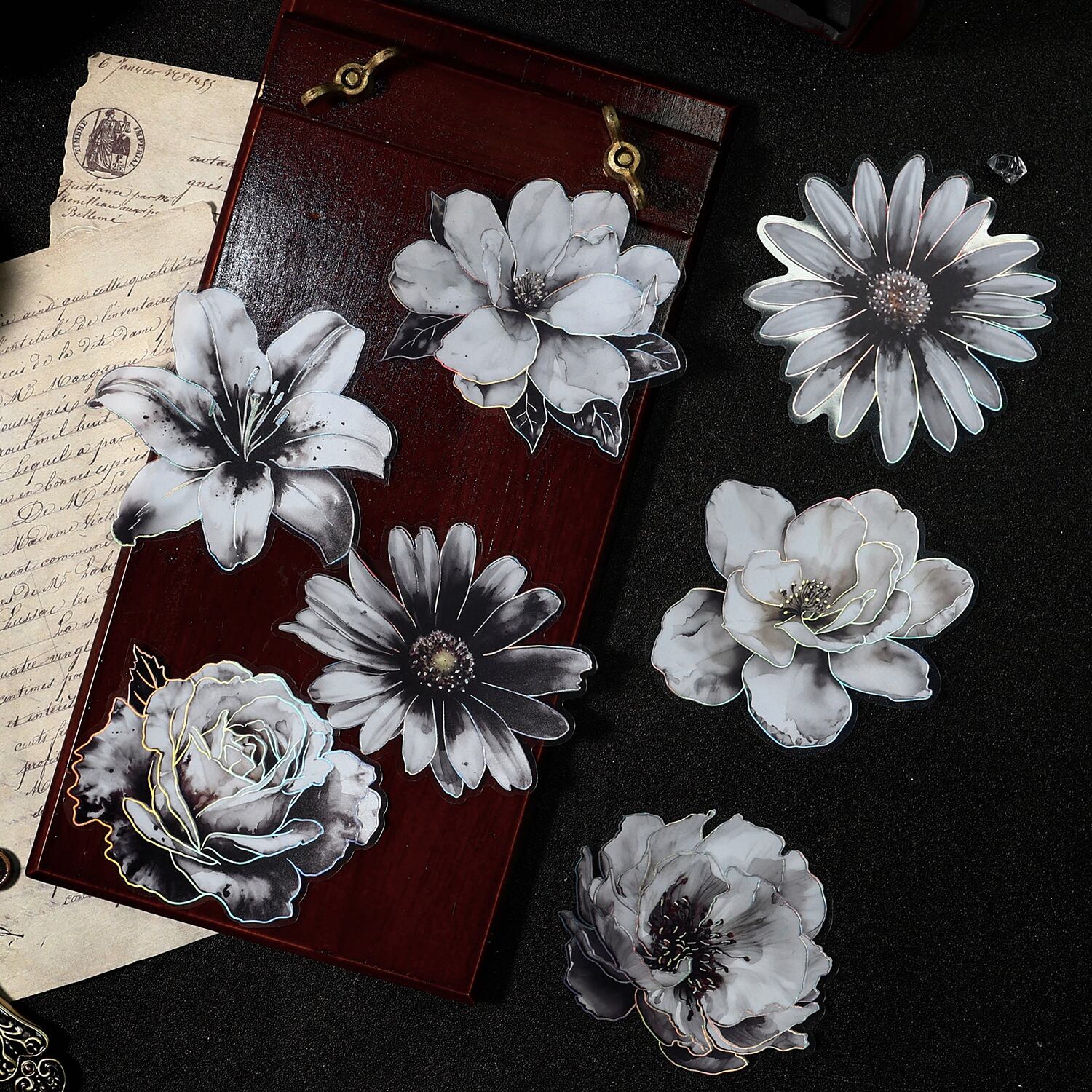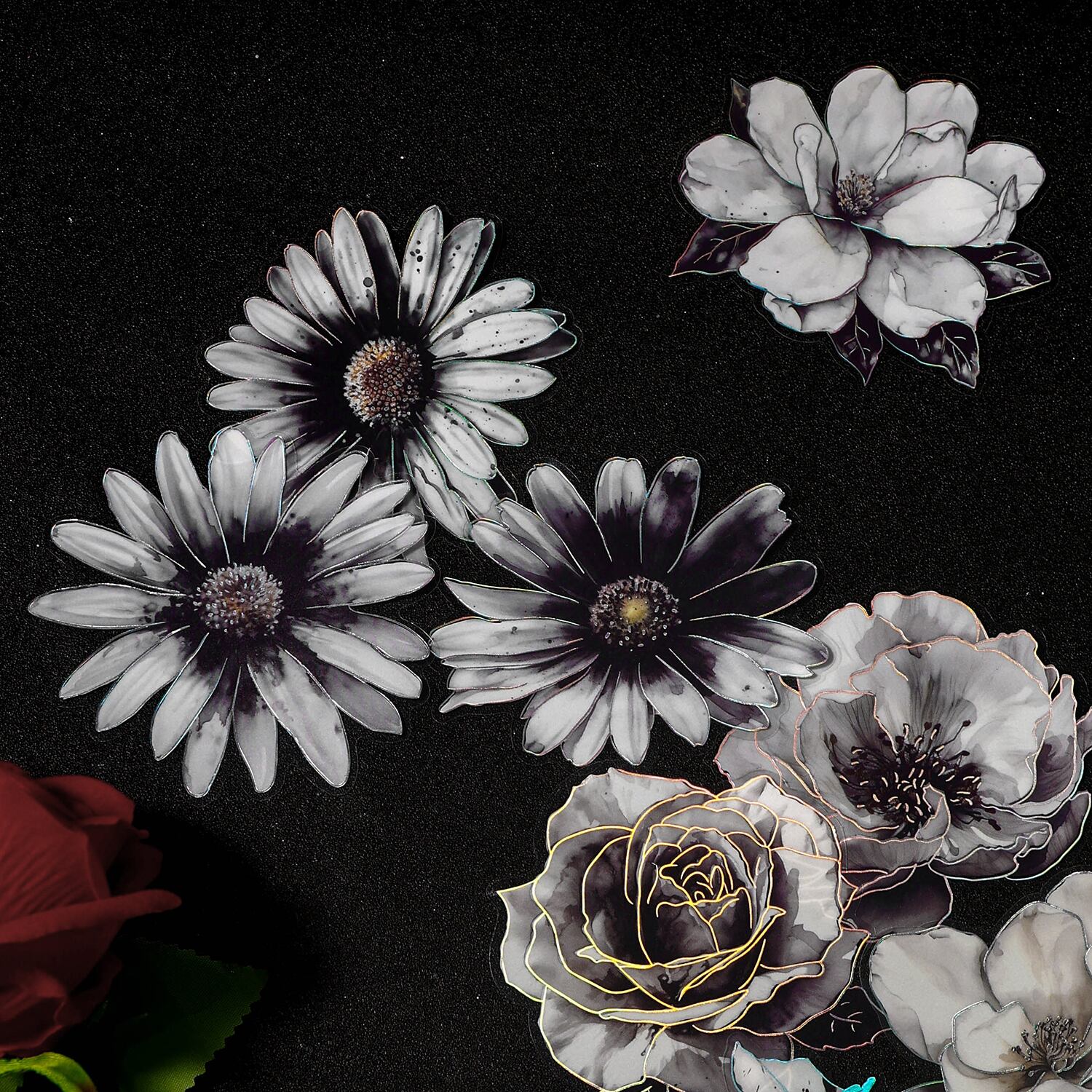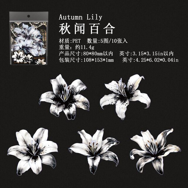 クリエイティブなステッカー,日曜大工のスクラップブック,花の装飾,collection不要のジャーナル,黒と白のスタイル,ペット,パックあたり10個