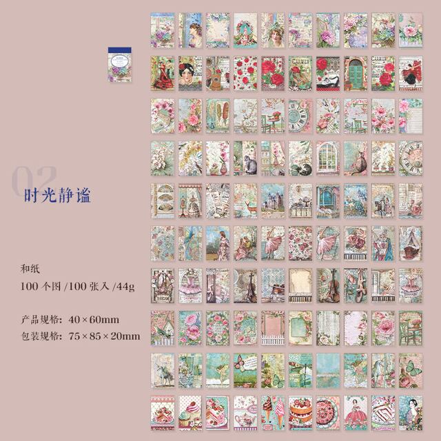 ヴィンテージデコステッカー、diyスクラップブック用品、ジャンクジャーナル、ハンドメイドプランナー、コラージュ素材、クラフト文房具、100個