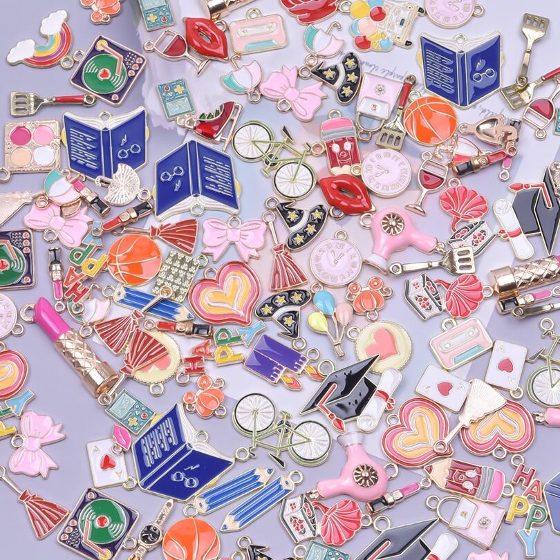 ジュエリー作り用の金属チャーム,コスチュームジュエリー作り用の金属製チャーム,唇,蝶ネクタイ,ハート,エナメルチャーム,DIY素材,バルク,卸売り,フ