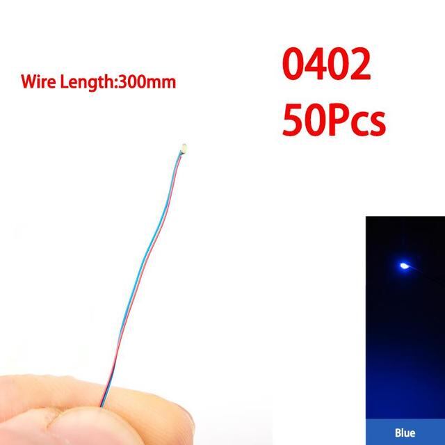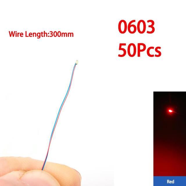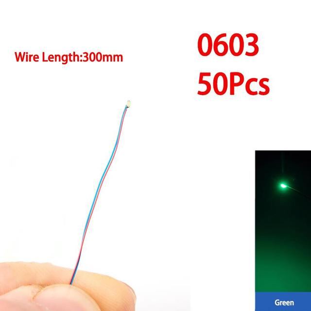 50ピース/セット0402 0603 smdランプ有線マイクロled事前ハンダ付けチップ3v鉄道模型玩具ライトdiyリード30センチメートルマイクロ風
