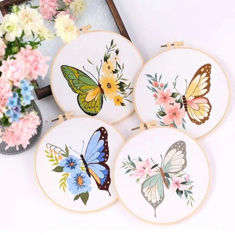 初心者と大人のためのDIY刺embroideryキット、プリントクロスステッチ、蝶の吊り下げ絵画