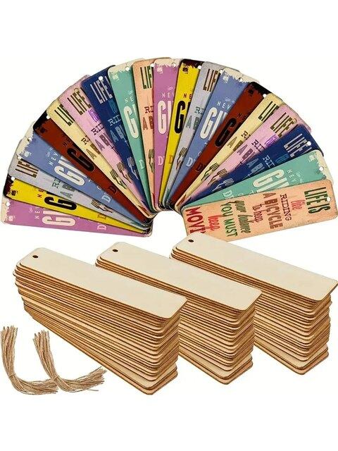 未完成の木製ハンギングタグ、ホールとロープ、空白のハート、ブックマーク、DIY、結婚式、誕生日パーティーの装飾