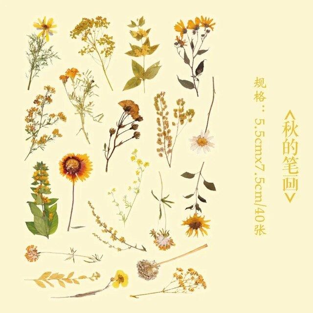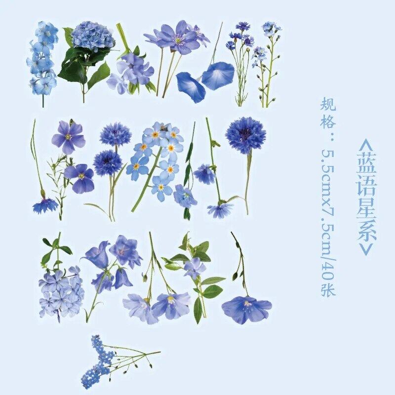 クリエイティブな花と植物のペットのステッカーパッケージ、DIY素材のラベル、装飾的な接着剤、パックあたり40個