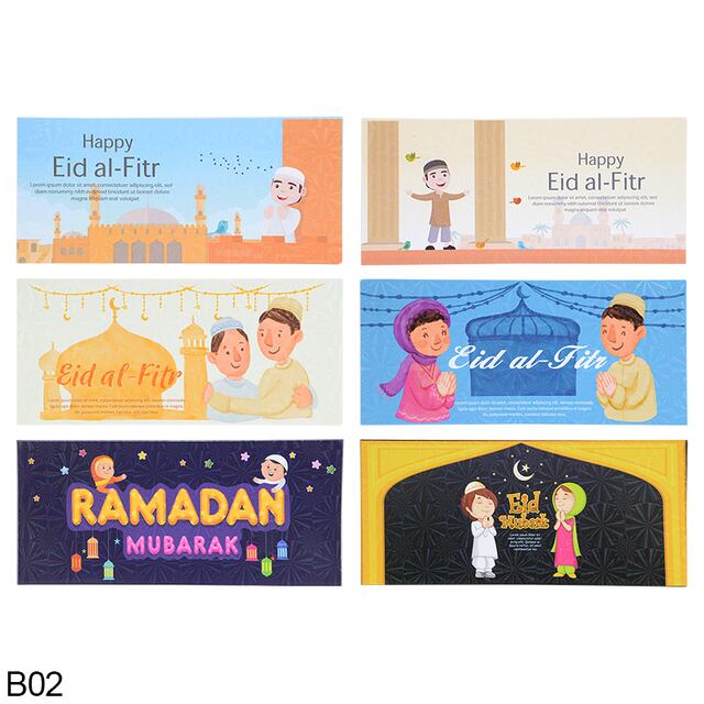 6ピース/ロットイードムバラク現金封筒ラマダンギフトマネー現金装飾紙包装袋イスラム教徒のパーティーの装飾用品