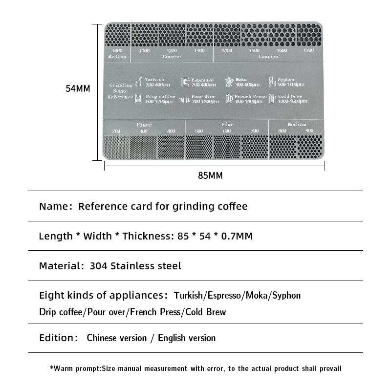 コーヒーパウダーグラインダー,厚さの参照カード,コーヒーアクセサリー