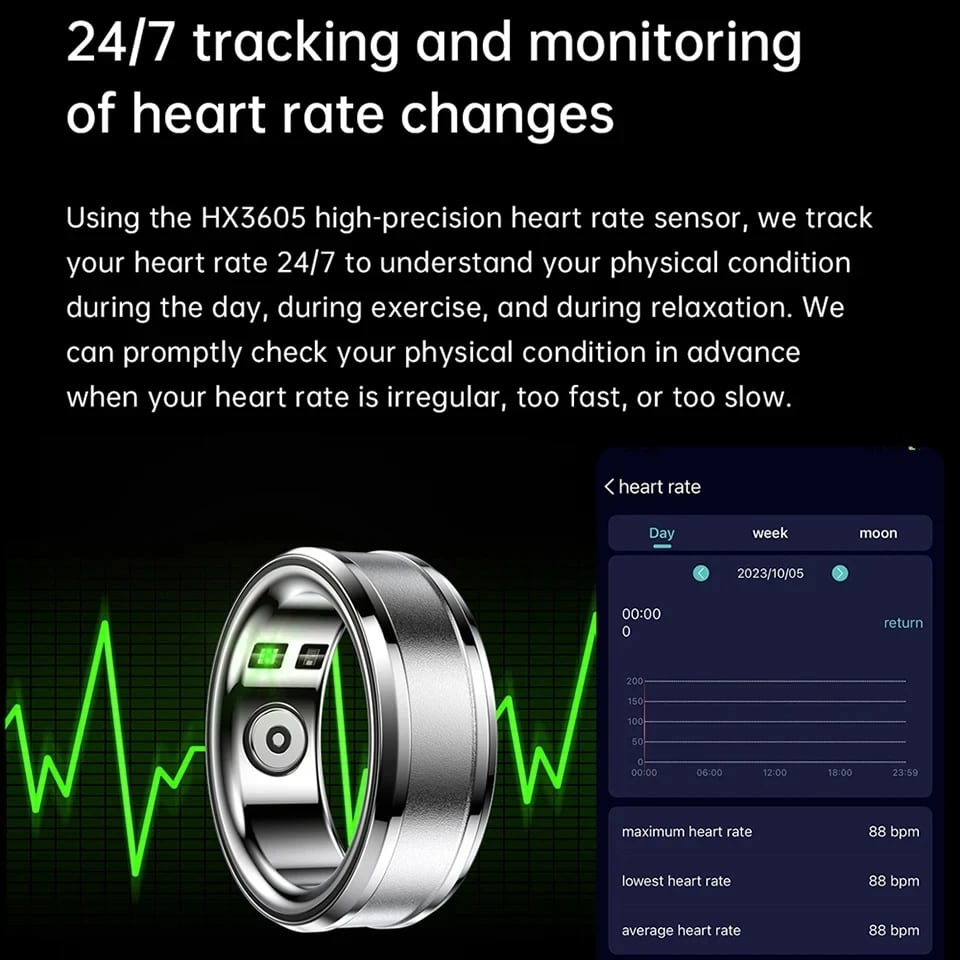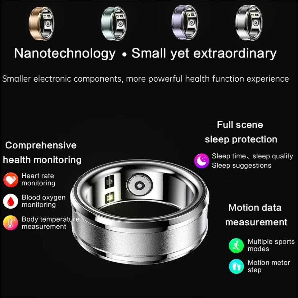 健康モニタリングスマートリング、ミリタリーグレード、チタンスチールシェル、マルチスポーツモード、防水、ip68、3atm
