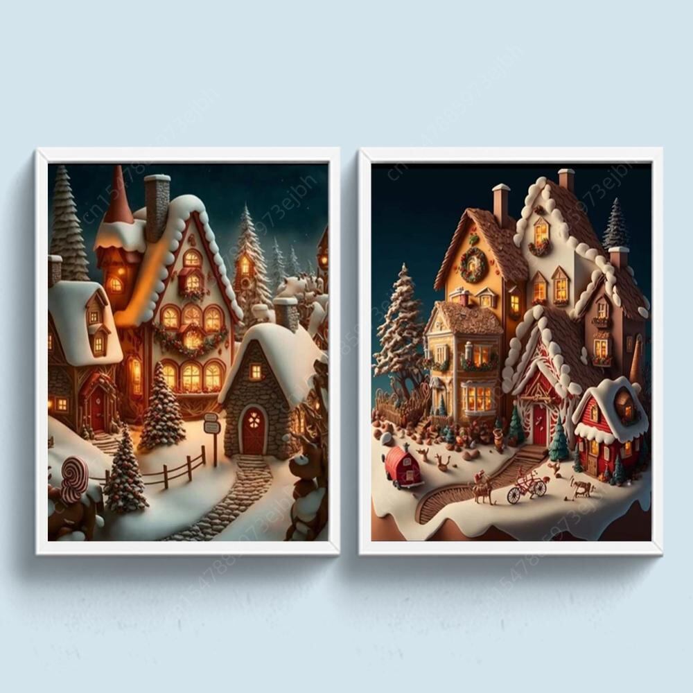 5d DIYダイヤモンドペインティングキット、フルラウンドドリル、スノールーム、室内装飾、アートクラフト