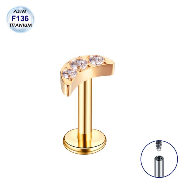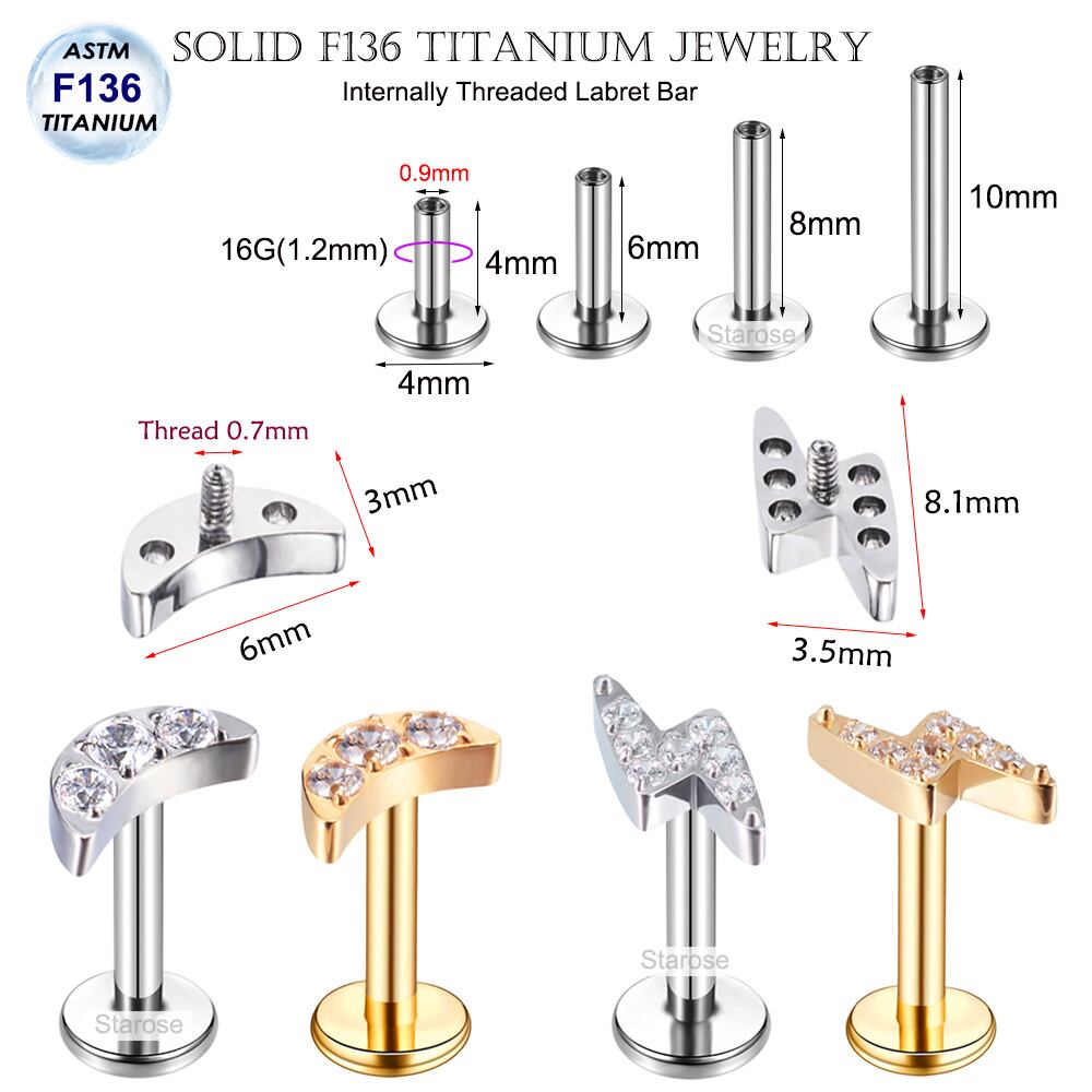1.2x 4/6/8/10ミリメートルインプラントグレードF136チタンジュエリーcz雷ムーン鼻スタッドヘリックスピアス軟骨耳珠ピアスラブレットバー