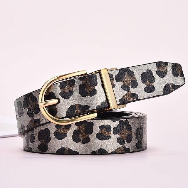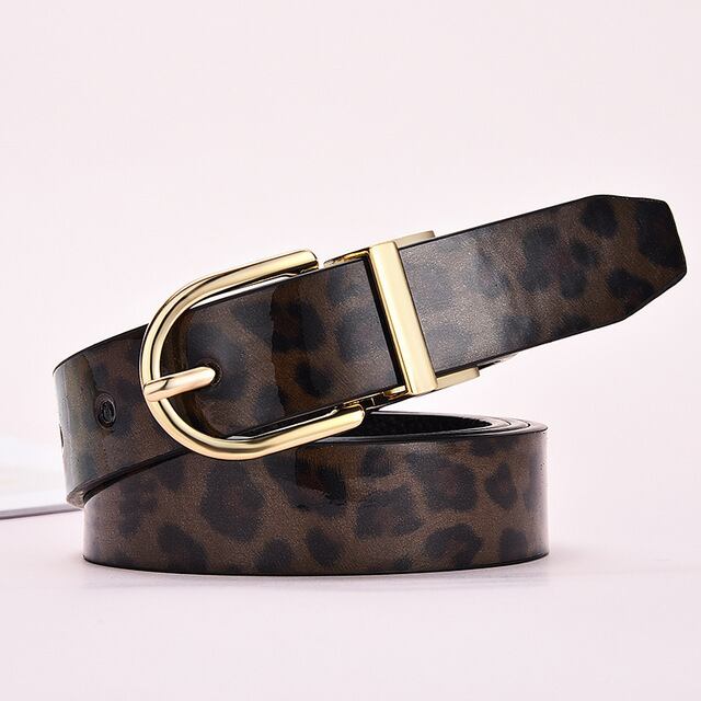 女性用ヒョウ柄ベルト、両面回転針バックル、ユース学生ファッション、ハイエンド、新