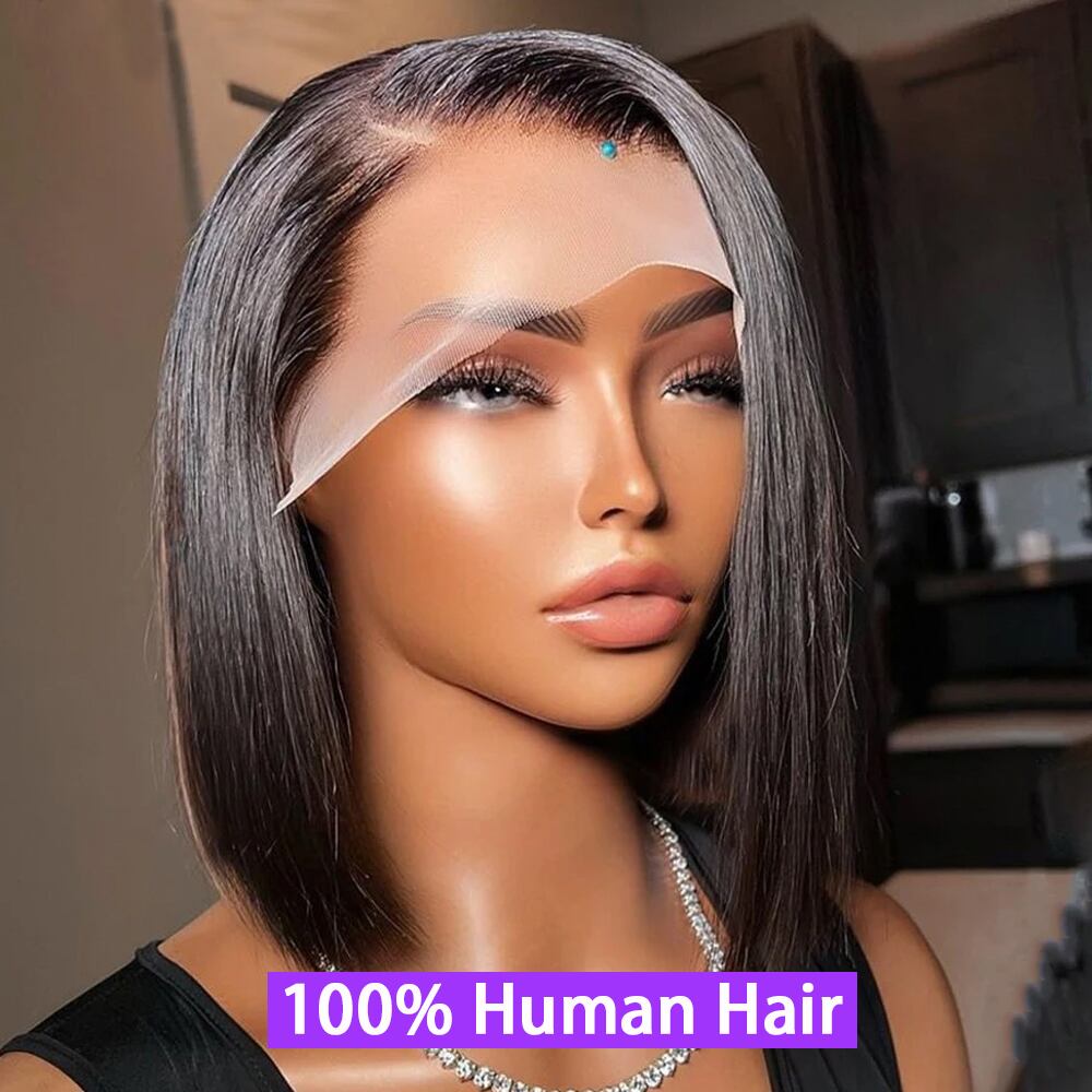 黒人女性のための短いボブ,事前に摘み取られた人間の髪の毛のかつら,接着剤なし,密度180,4x4 HD, 13x4