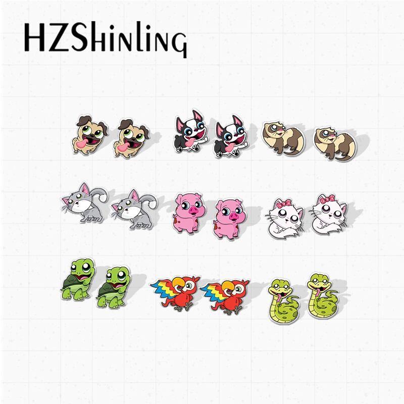 犬の子犬のイヤリング,素敵な動物の形をした子猫,オウム,スネーク漫画,エポキシ,アクリル樹脂のイヤリング,新しいコレクション