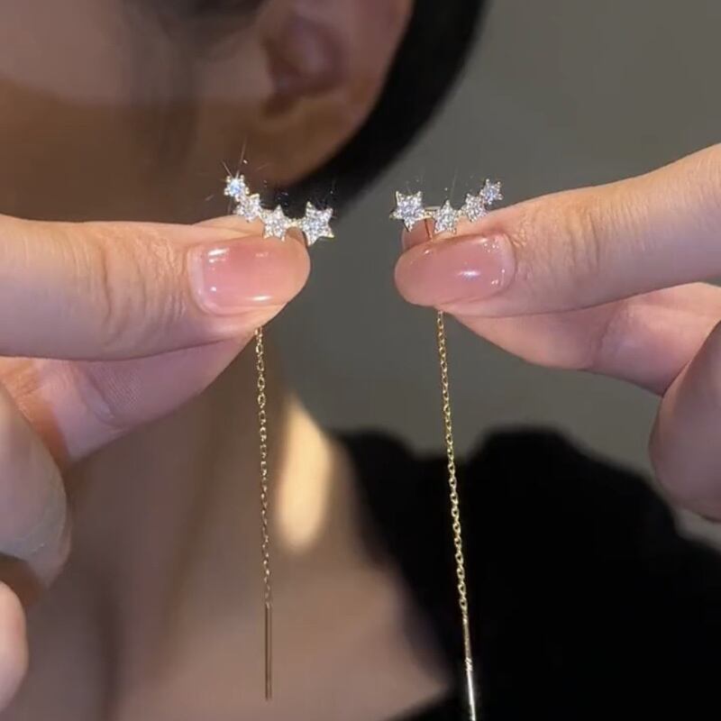 女性用ロングチェーンイヤリング,タッセル付きペンダント,クリスタル,スター,ストレートペンダント,トレンディなジュエリー,e023
