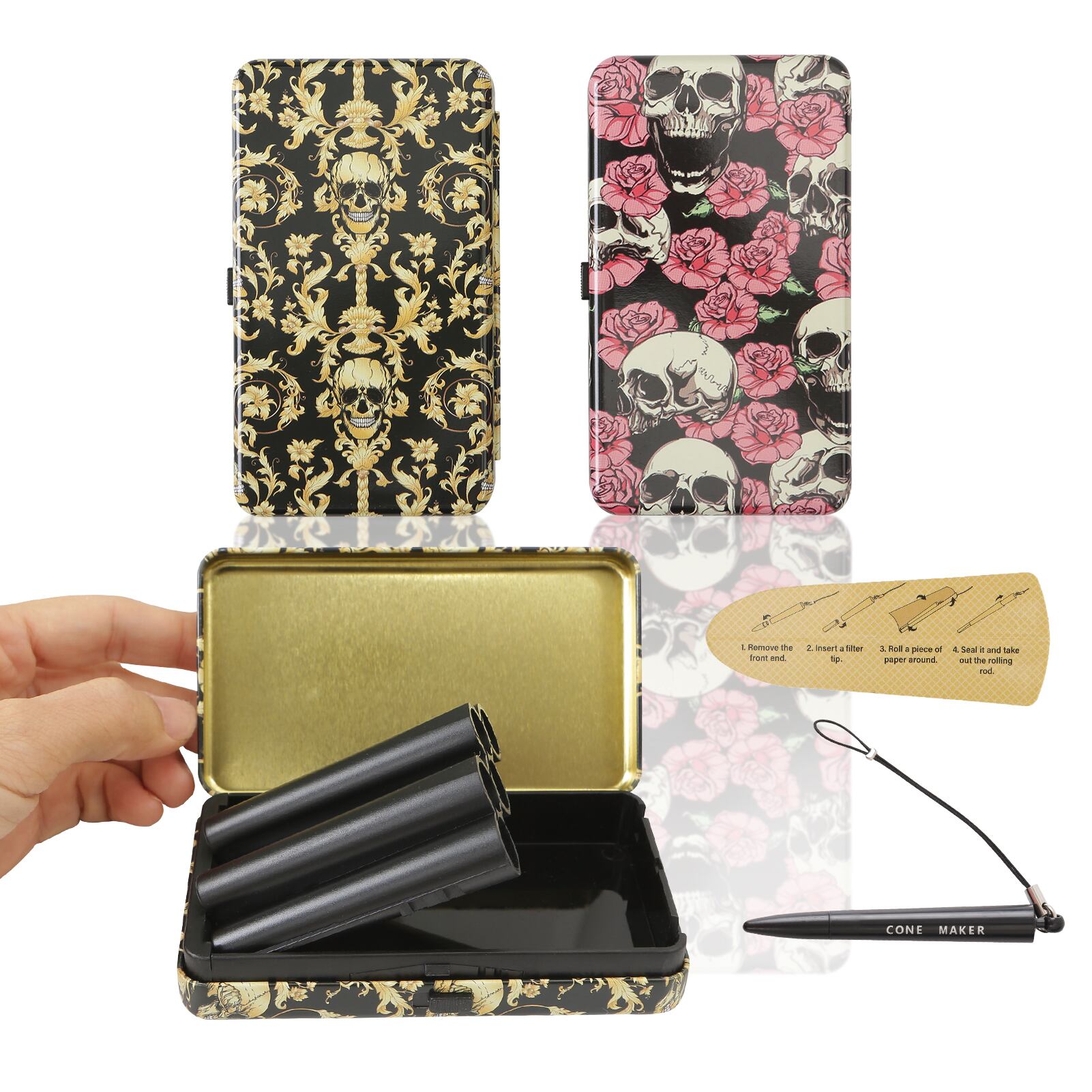 コーンメーカーと折りたたみ式の金属製収納ケース、防臭ロックコンテナ、コーンペーパーが付属、78mmを保存するための気密