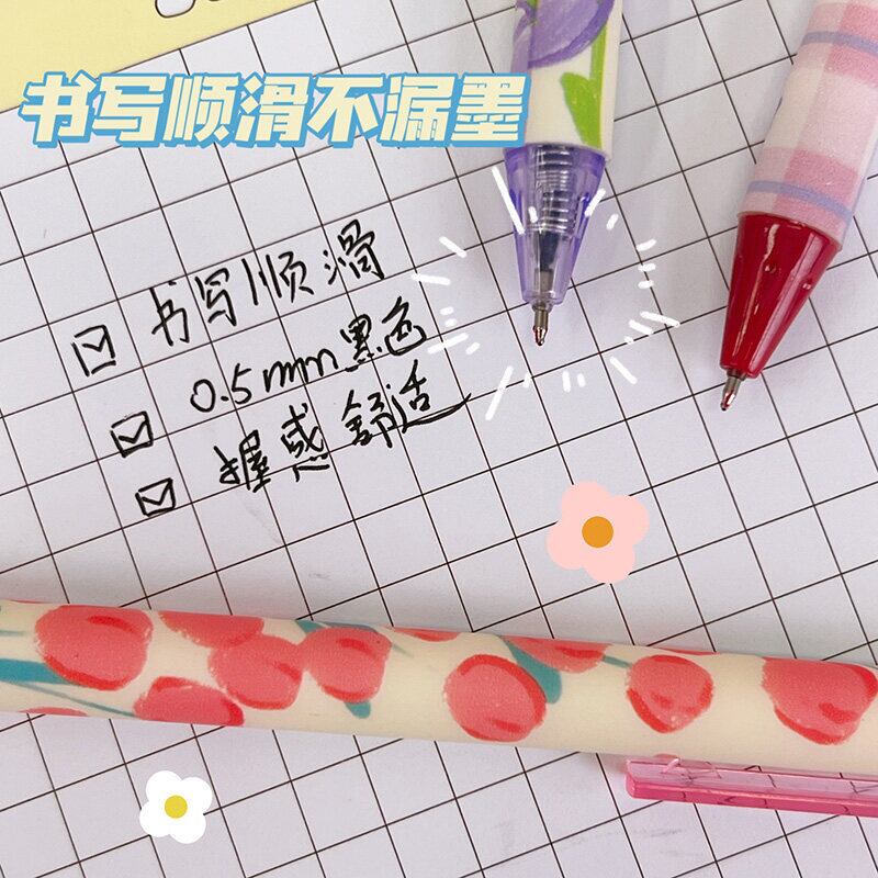 ペン先ピース/セットmm,ピンクの花柄,クリエイティブ,学生,オフィス,文房具用の黒ペン4本のプレス0.5 ml
