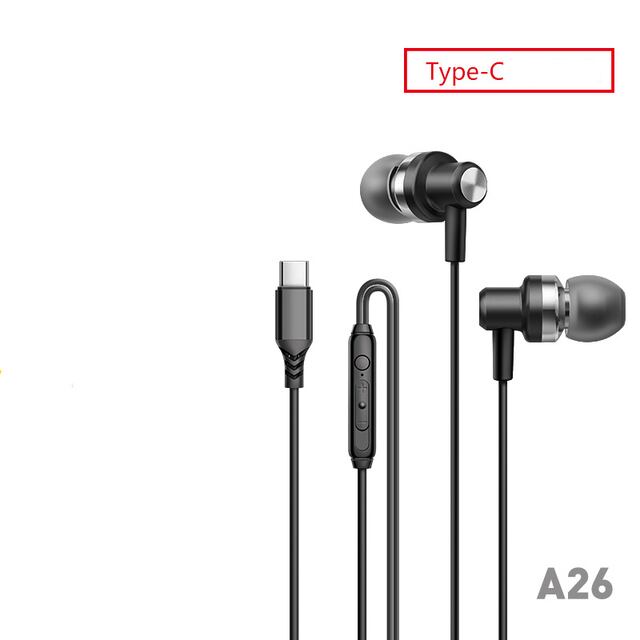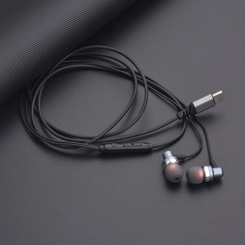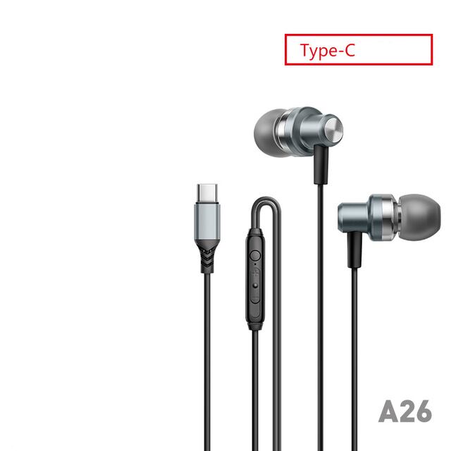 デジタルディスプレイ,ステレオ,タイプC,フラットポート,Huawei, Samsung用の金属コード付き有線ヘッドセット