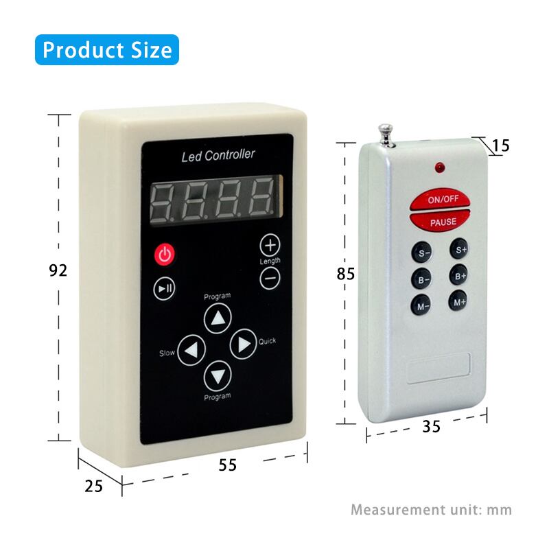 リモコンサイズ:l85*w35*h15mm·コントローラーサイズ:l92*w55*h25mm·パッケージサイズ:l135*w80*h55mm·.Connection方式:共通陽極接続方法:LED光出力;DC電源·。