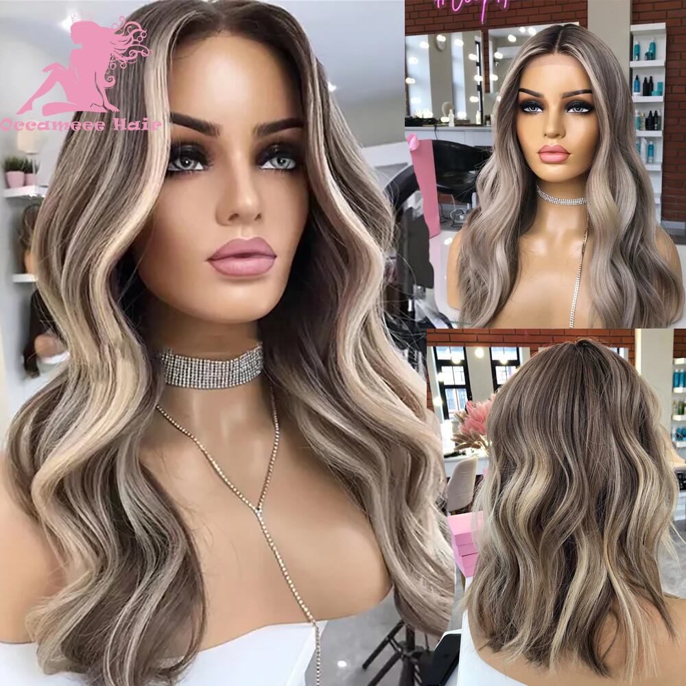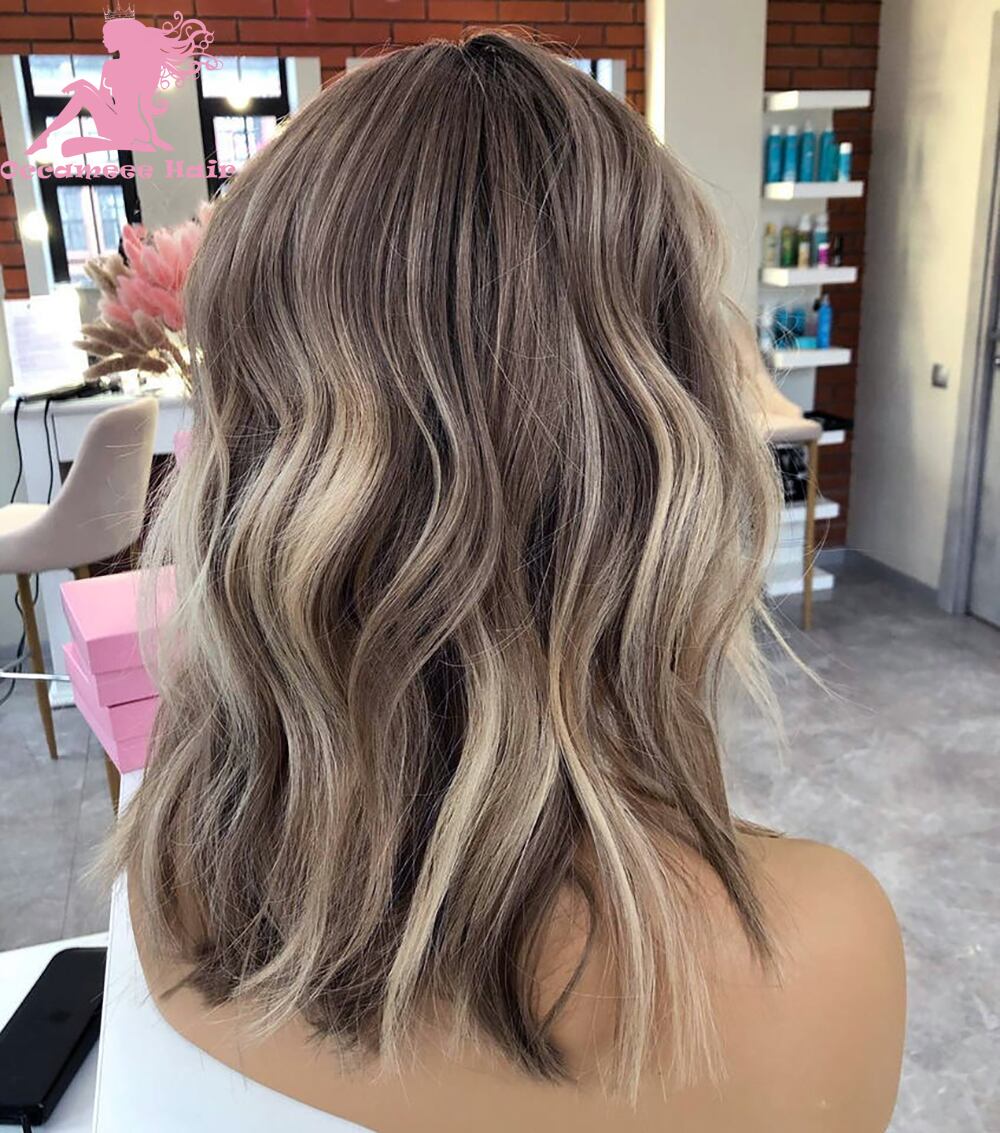 ブロンドとブラウンのナチュラルヘア,ウィッグフロントレース,hd,フルレース,自然なウェーブ,スイープ,13x4