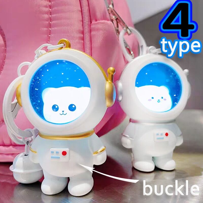 宇宙飛行士キーホルダー,漫画のキャラクター,小さなクマ,夜に輝くライトリング,星空,キュートな宇宙飛行士のキーホルダー,吊り下げ