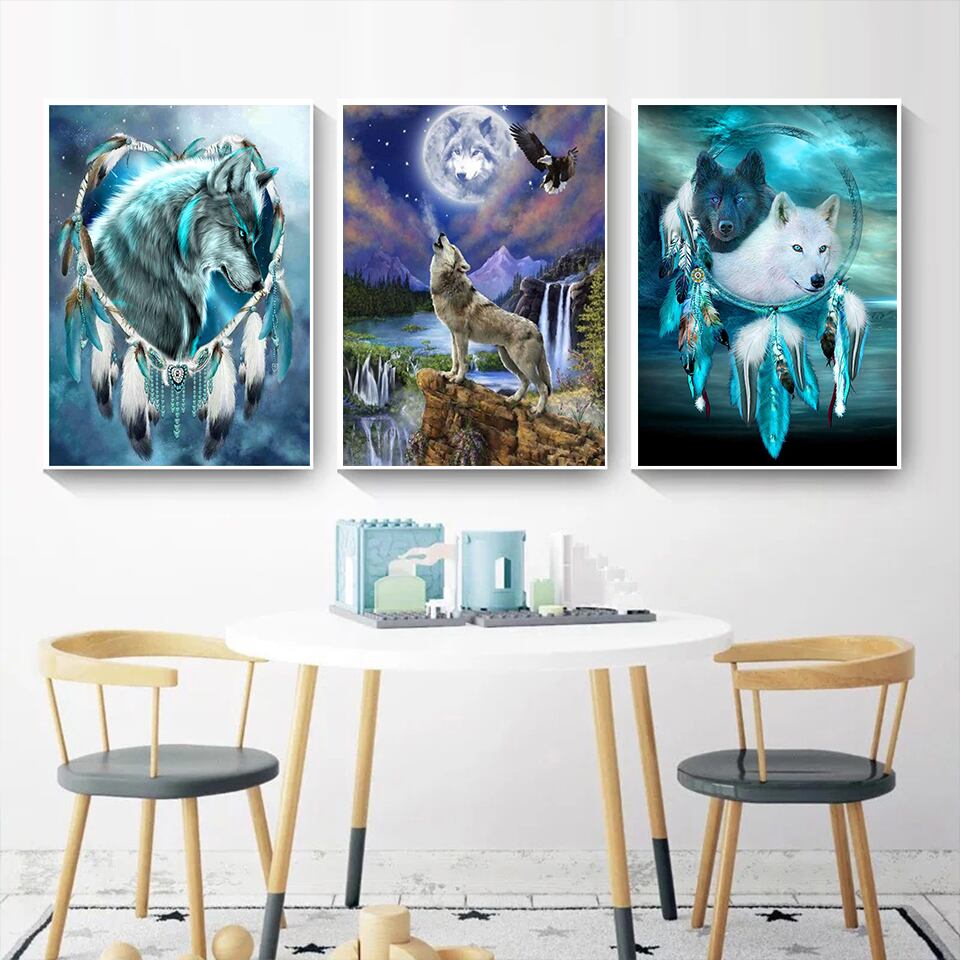 DIY 5dダイヤモンドペインティングキット、ウナのオオカミの雰囲気、手作りの家の装飾のための完璧なギフト